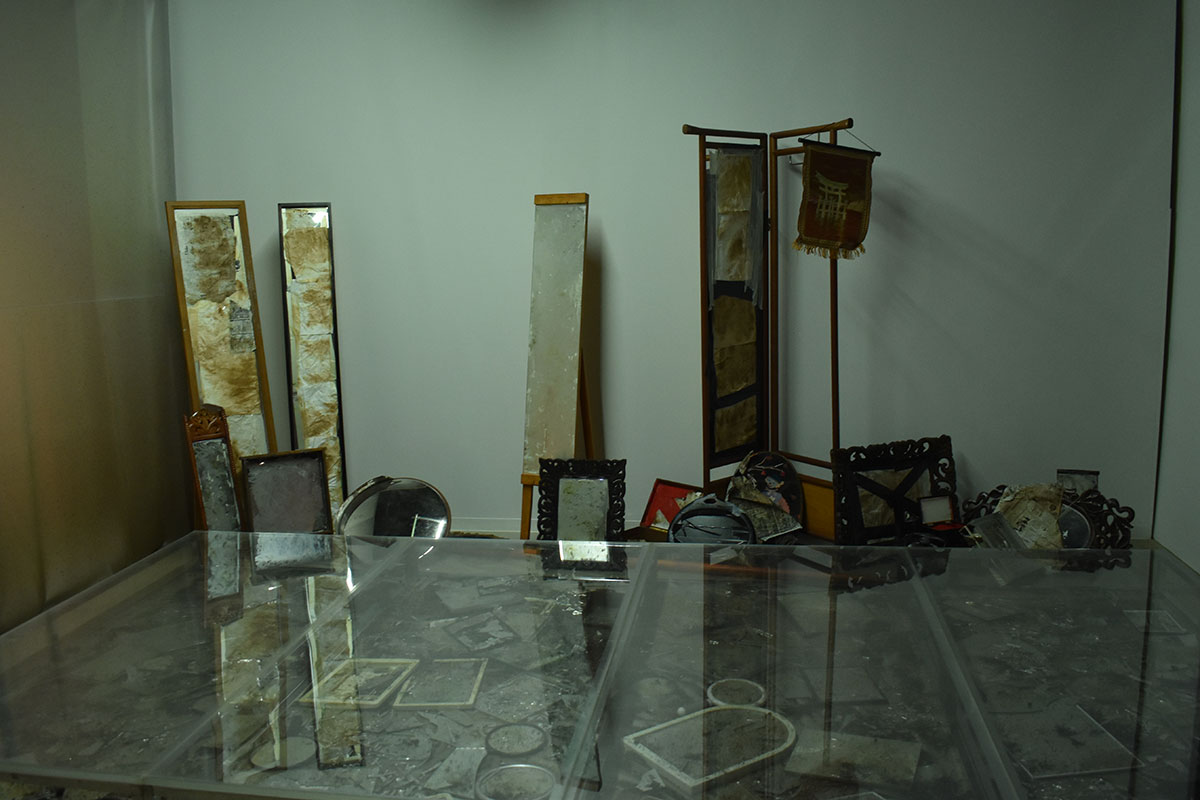 さまざまな恐怖心にまつわる物品や写真、映像などを「存在」「社会」「空間」「概念」の4エリアに分けて展示する。