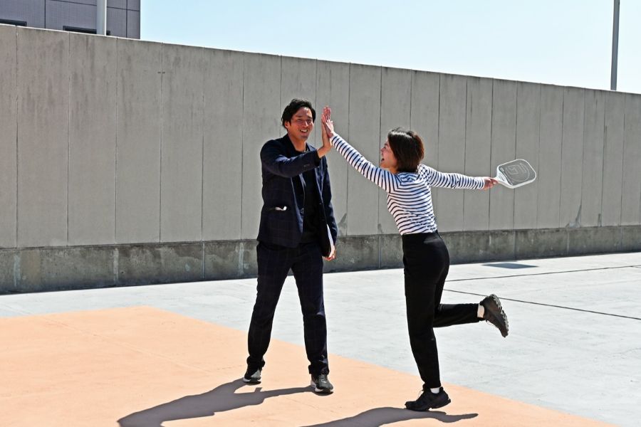 • 「ホテル アゴーラ リージェンシー 大阪堺」岡山さんをはさんで、今回ピックルボールをレクチャーしてくれた田頭さん、佐藤さん