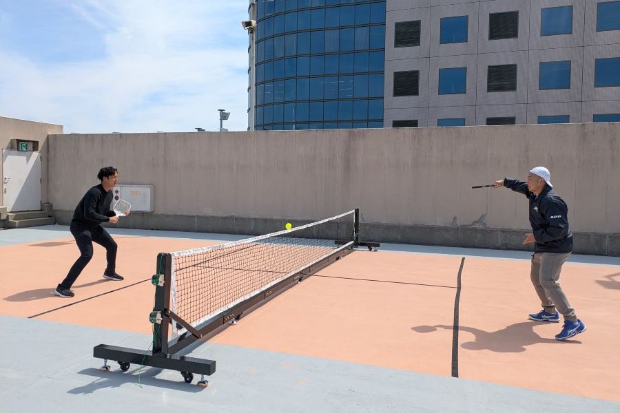 • 学生時代にテニス部だった編集も「ピックルボール」に初挑戦。ラリーでパドルに慣れたら男女混合ダブルスでミニゲームも。ボールがバウンドしすぎず、打点が安定するので、ミスショットが減らせるかも