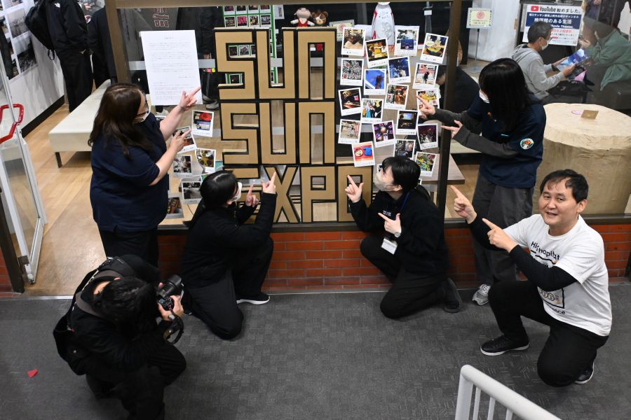 • 塚口サンサン劇場の戸村文彦さん(右)と愉快な仲間たち(2025年12月撮影)