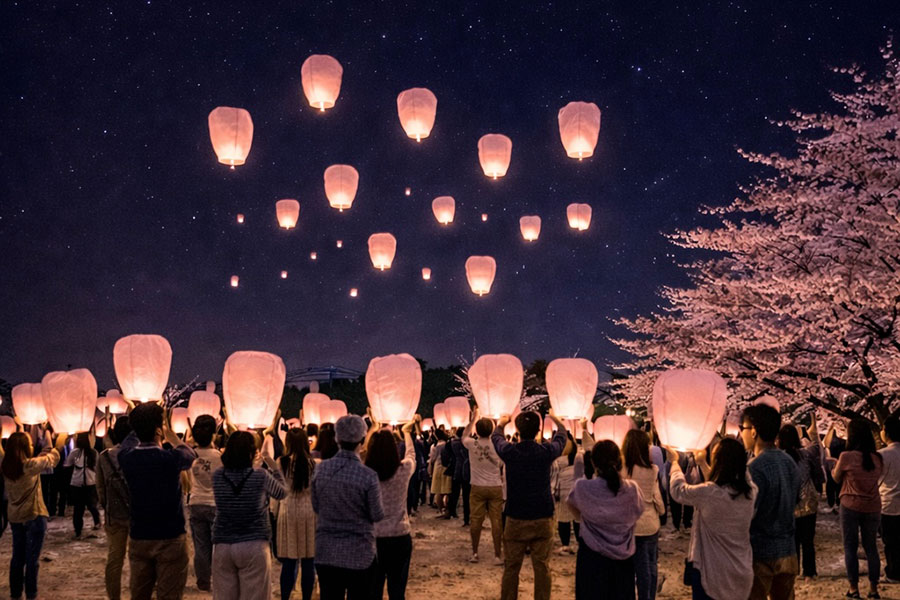 【関西】梅田から歩いて行ける!扇町の「桜まつり」は3日間だけ、夜空に舞う“桜色ランタン”も