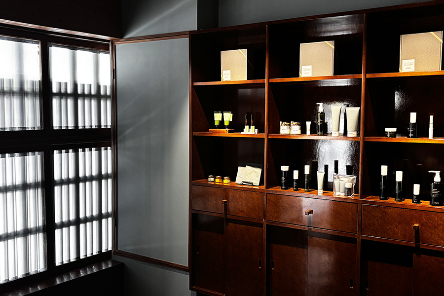 ショップ「Apothecary Salon(アポセカリーサロン)」では、OSAJIのスキンケアアイテム、フレグランスに加え、日本各地からセレクトした暮らしのアイテムを展開 。「お匙 京都」限定のオードトワレやハンドクリームは、新しい京都お土産として喜ばれそうだ。