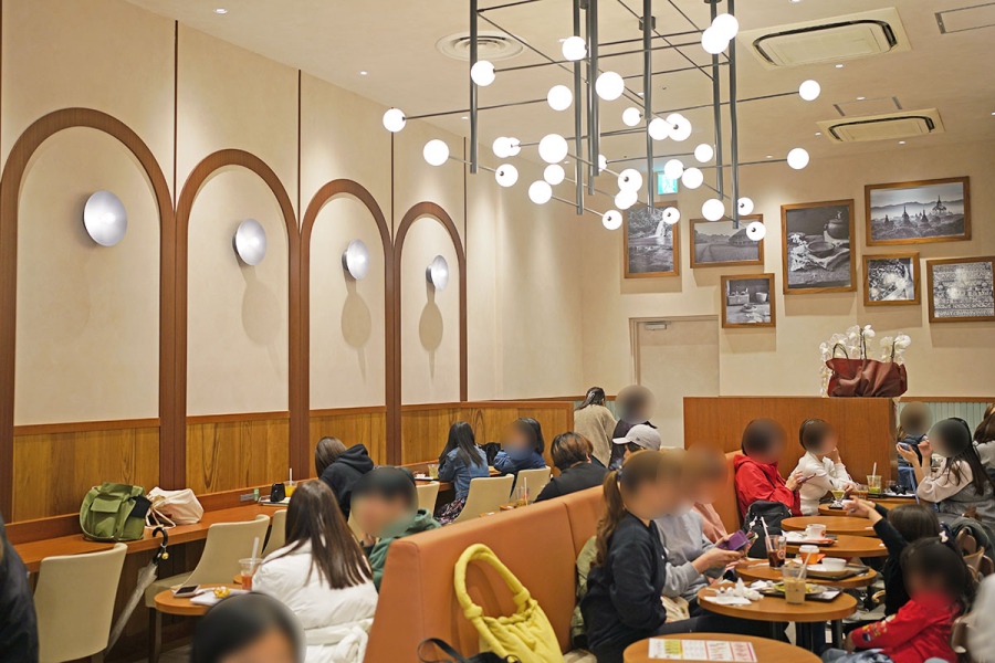 取材当日は、平日の昼間にもかかわらず、50席がほぼ満席。レジ待ちの行列ができる盛況っぷりだった。「サンマルクカフェ」の人気メニュー「チョコクロ」などに加え、「日本とアジアの“お茶”の魅力を五感で楽しむ」をコンセプトにした「&茶」限定メニューも多数登場する。