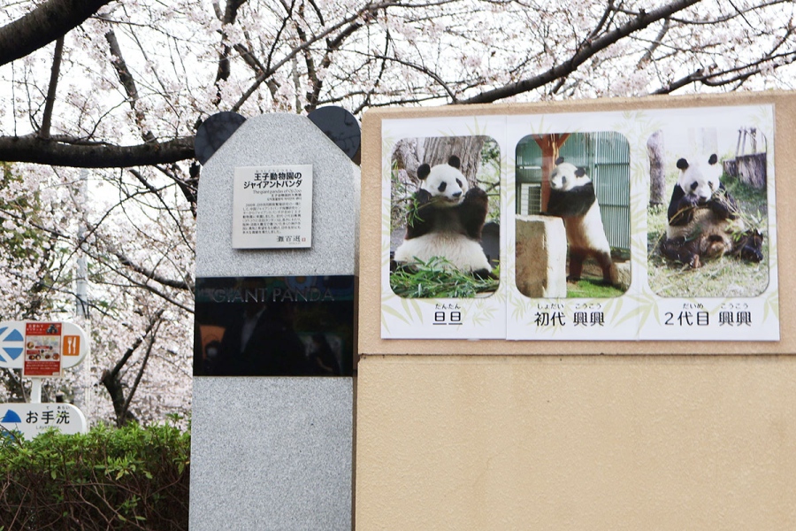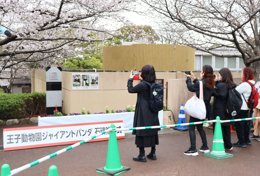 白と黒の石でパンダをかたどった石碑は、早くも多くのファンが訪れる場となっている。吉田さんは「目を引くデザインなので、10年後でも『ここにパンダがおったんやな』と感じてもらえれば」と期待を寄せる。梅元さんも「桜の木の下、タンタンが暮らした建物の近くという良い場所に設置してもらえた。タンタンもきっと喜んでいるはず」と目を細めた。