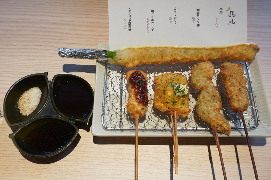• 串カツ専門店「揚八」の串カツ盛り合わせ(5本1299円)も(Lmaga.jp撮影)
