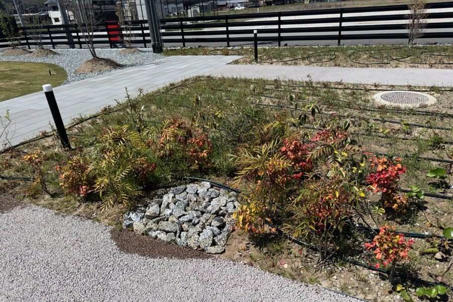 • 4月8日の植栽の様子。温かい季節となり、草抜きなどの世話をしっかりと。この植栽を含め、今後は子どもや、一般の人たちも施設を見学できる機会をつくる予定(写真提供:平田運輸)
