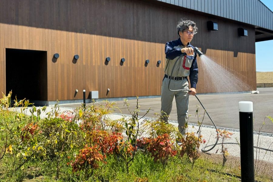 • 平田社長は毎日自ら水やりも行い、万博レガシーを加西市で育み続けている(写真提供:平田運輸)