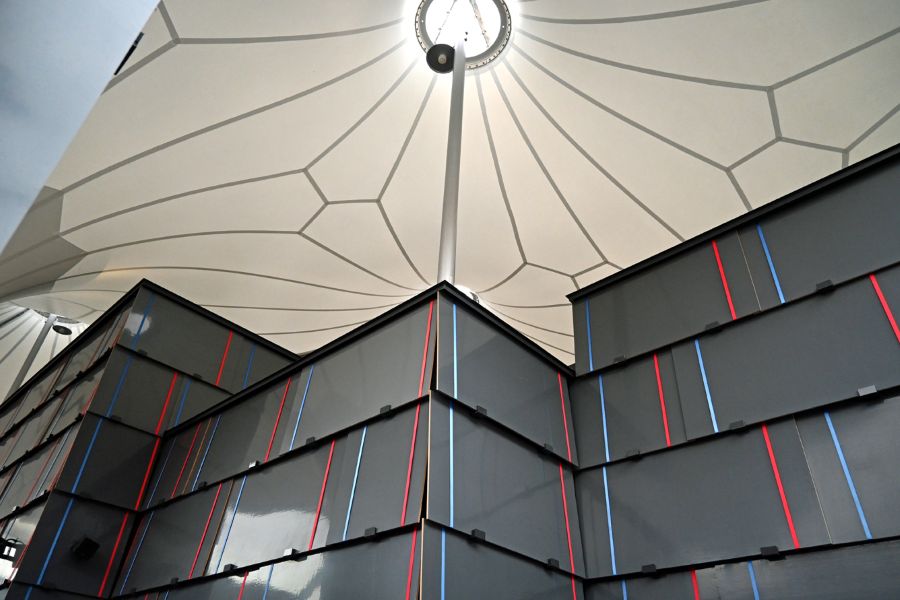 • 「ルクセンブルク・パビリオン」外壁は、コンクリート型枠に(大阪・関西万博 2025年10月12日撮影)