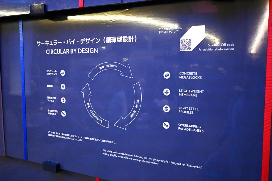 • 「循環型経済(サーキュラー・バイ・デザイン)」の考え方。『大阪・関西万博』で「サステナビリティ賞( #BIEアワード)」を受賞している(大阪・関西万博 2025年10月12日撮影)