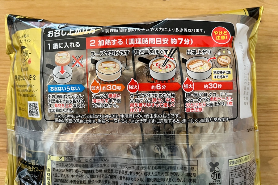 冷凍スープの上に冷凍麺と具材を重ねて凍結させる「二段凍結三層構造」で、水やお湯は不要。片手鍋に入れて弱火~強火で温めるだけで、味の再現度が極めて高いラーメンが味わえるというシロモノだ。