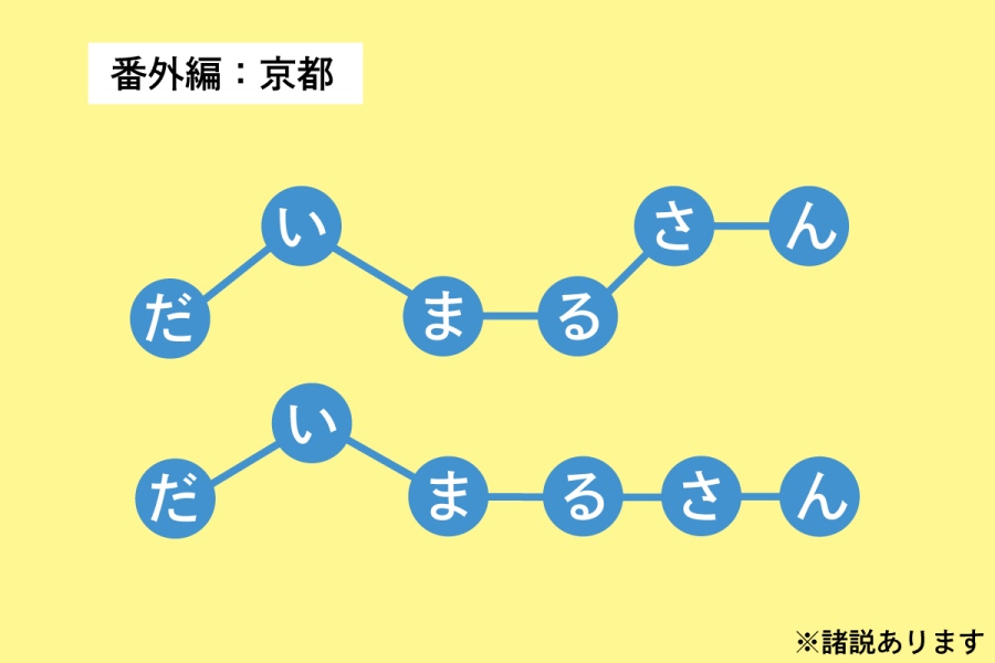 さらに京都店の場合は異なるようで、「『だいまるさん』とお客さまから『さん』をつけて呼んでいただくことが多く、その場合は『だい(↑)まる(↓)さん(↑)』と少し上がる方もいらっしゃいますし『だい(↑)まるさん(↓)』と『まるさん』を下げて呼ぶ方もおられます」と独自のパターンもあるようだ(諸説あります)。