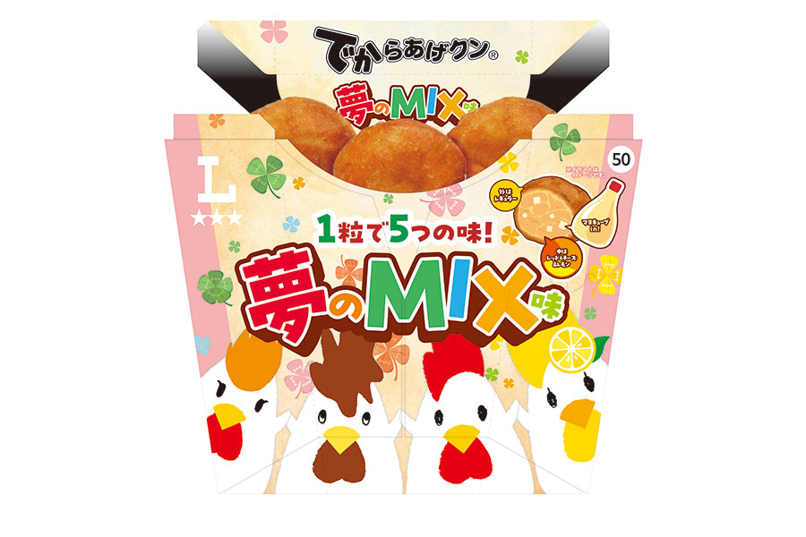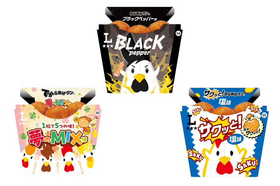 発売40周年も重なった今回、新フレーバー「からあげクン ブラックペッパー味」(278円)、1度に5つの味わいを楽しめる「でからあげクン 夢のMIX 味」(278円/4月14日〜)、2種類の国産塩を使った「サクッと!からあげクン 塩味」(298円/4月28日〜)を発売。