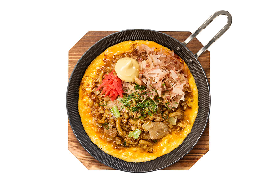 特製ソースにスパイスを効かせた「やみつきソース味」(790円)、白だし入りのふわとろ玉子を合わせた「ふわ玉ソース味」(890円)、ねぎ塩だれとガーリック香るソースで焼き上げた「やみつきねぎ塩味」(790円)、殻ごと素揚げした海老と一口大のいかげそ唐揚げを盛り付けた「海鮮ねぎ塩味」(980円)から選ぶことができる。※すべて1サイズのみ