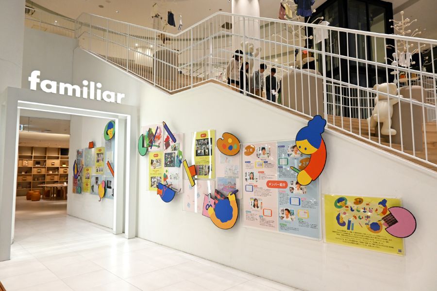 • このプロジェクト以外にも、春らしい子どもたちの作品が商品と一緒にディスプレイされている(「ファミリア神戸本店」2026年3月撮影)