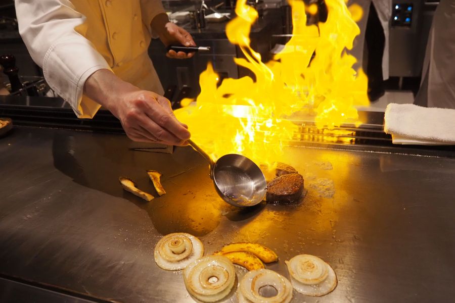 新店には旧店舗で腕を振るったシェフらが集結し、炎が上がるフランベなどプロの華麗な手さばきを間近で見ながら、素材や料理のポイントを教えてもらう楽しみ方も。