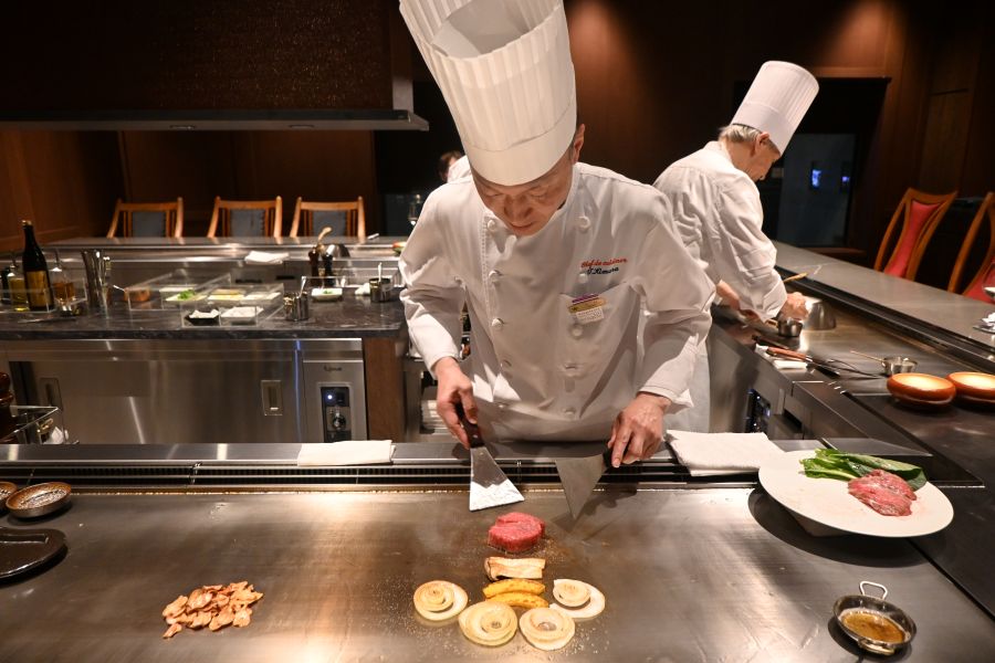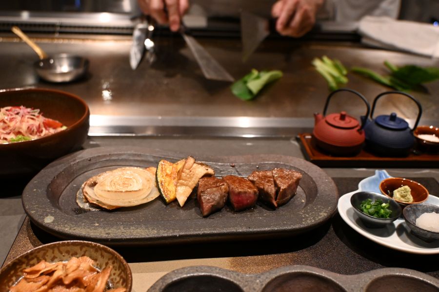 ほかにも、レギュラーメニューはランチコース・4600円~、ディナーコース・1万2500円~(肉の種類により料金は異なる)ほか、黒毛和牛ステーキや活伊勢海老の鉄板焼きなどのアラカルトも。4月限定でビール、グラスワインなど4種を100円で楽しめる開業記念フェアも実施される。