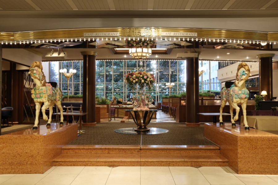その木馬が目印となる、同ホテルのビュッフェ&カフェレストラン「ナイト&デイ」のスタッフのひとりは、「この木馬、宝塚ファミリーランドから来た、と先輩から聞きました」と話す。グループ会社だけに、言われてみると、こんな木馬あったんじゃないか、そんな気がしてくる。