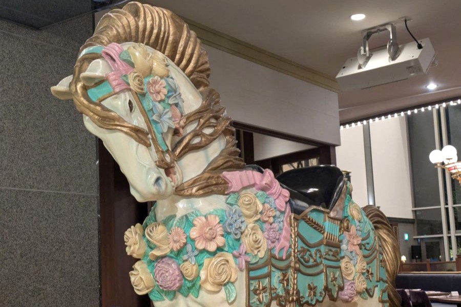 そして、大阪・梅田にも「宝塚ファミリーランドから来た」と噂になっている、あるものが。「ホテル阪急インターナショナル」(大阪市北区)の1階に鎮座する2頭の「木馬」だ。