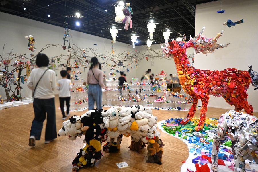 そして、今回の展示の名称は『みんなでつくる宝塚コドモ博』。宝塚ファミリーランド関連の展示とあわせ、使われなくなったおもちゃをぬいぐるみを材料に、恐竜や動物に生まれ変わらせる美術家・藤浩志氏のアート空間。そして、子どもも、大人もアートに参加できる「創造ラボ」の3本立ての企画となっている。