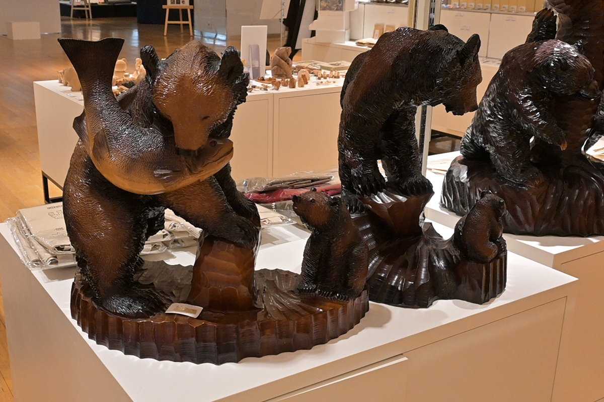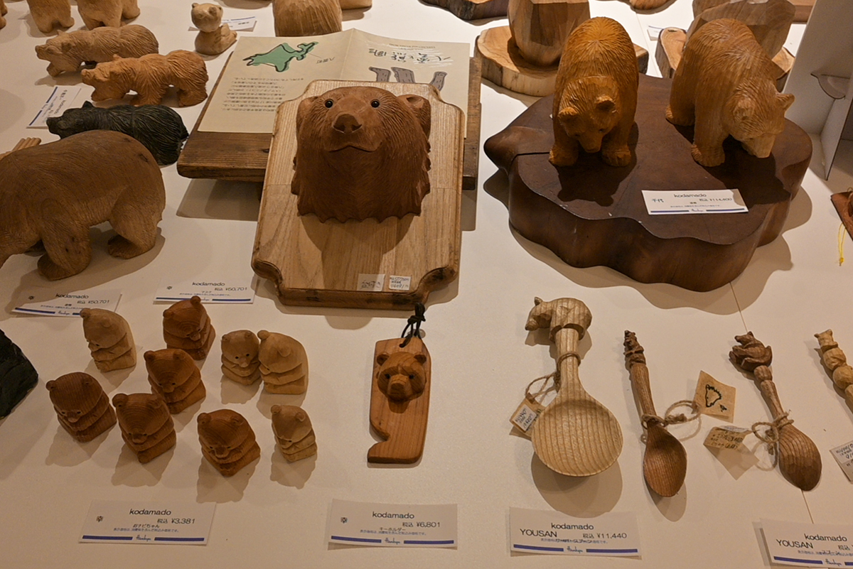• 『家族で紡ぐアイヌのてしごと』に並ぶ木彫りの熊など(Lmaga.jp撮影)