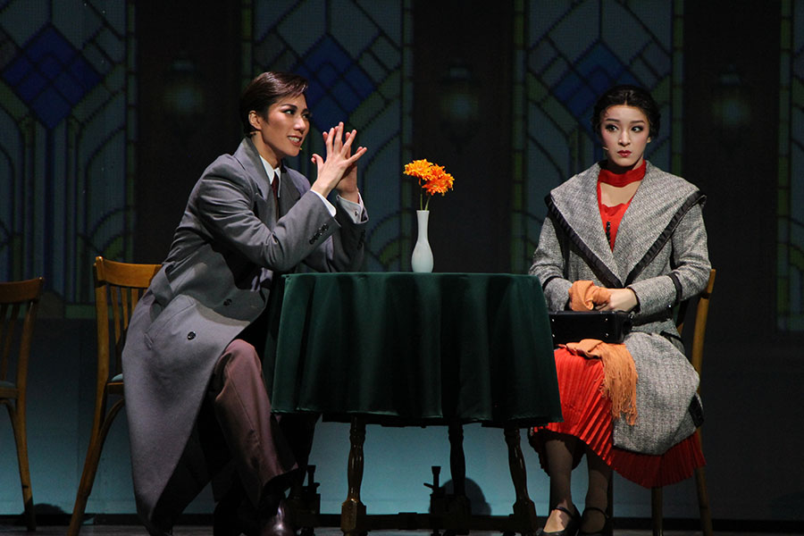 またスマートな色気を放ったのが、瀧昌の同僚・深見龍之介役を演じた男役スターの縣千(あがた・せん)。タイピストの芳森芙美子(華純沙那)と深見との変化していく関係性は、本作の魅力のひとつであり、ふたりの絶妙な掛け合いが舞台の後半を盛り上げる。