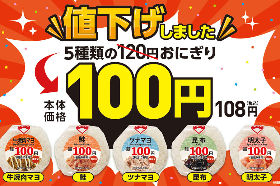 • 「ローソンストア100」対象のおにぎりが100円に