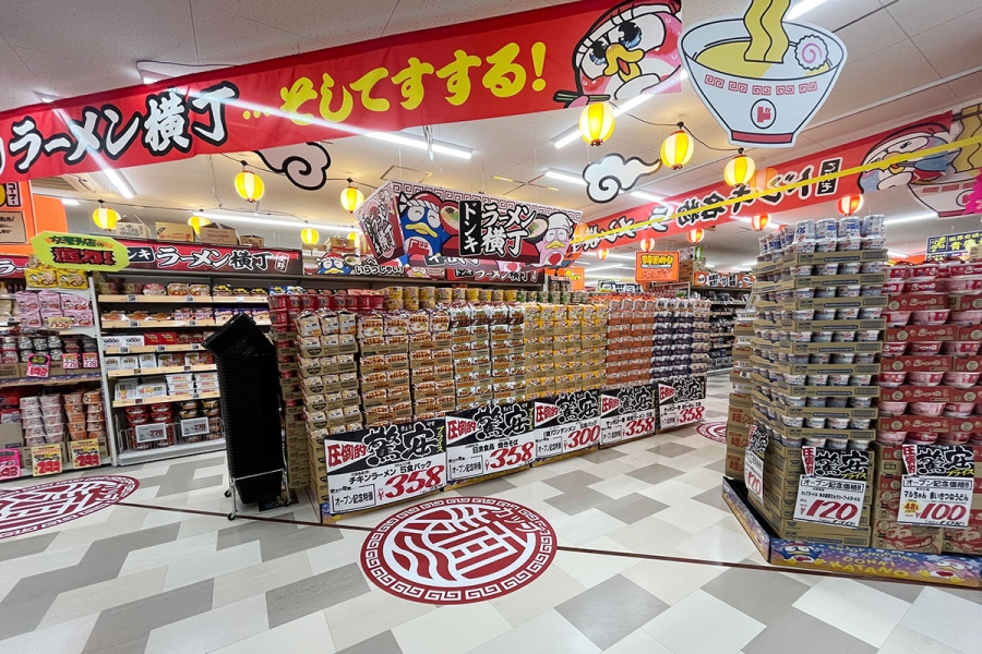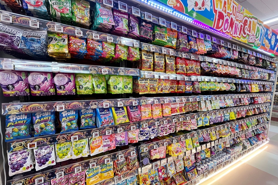 店内を歩いているとカップ麺や袋麺が集まる「ラーメン横丁」やお酒、駄菓子コーナーなど、どれも凄まじい品揃えであることが分かるが、中でも交野店が力を入れているのは、グミ。