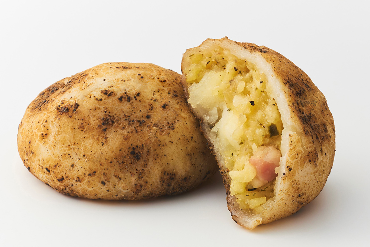 また「コグマパン」 (1個420)は、塩バターと生クリームの入った濃厚なスイートポテトに、アーモンド・黒ごまをアクセントにした甘じょっぱい味わい。こちらも、わらび餅粉が入ったもっちり柔らかな生地で包んで蒸し上げており、どちらの商品もじゃがいもや、さつまいもそっくりのビジュアルに仕上がっている。
