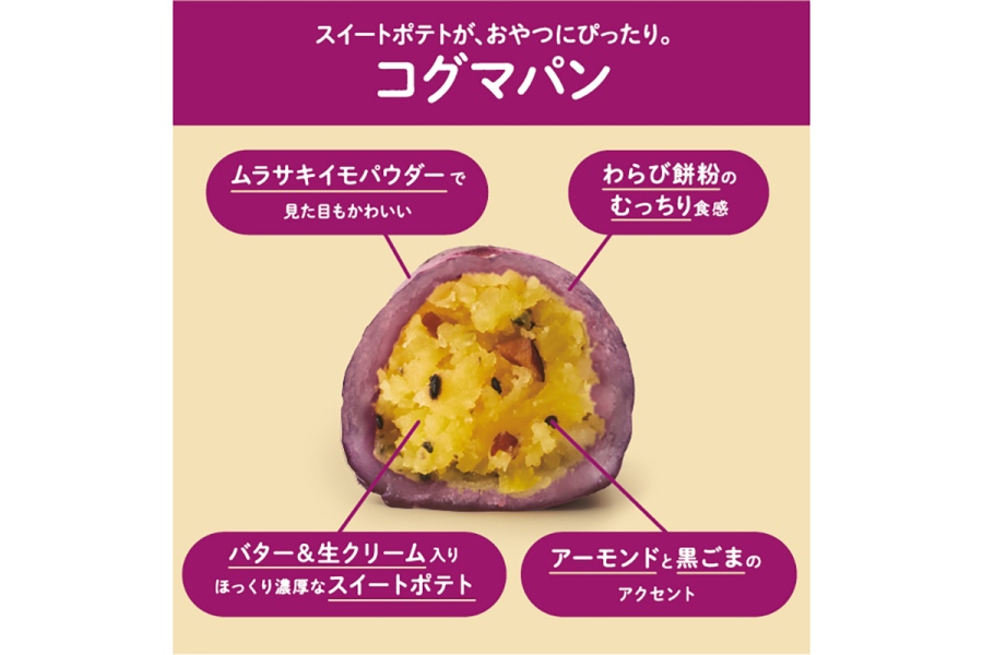 人気の韓国フード「カムジャパン」と「コグマパン」。韓国語でじゃがいもは「カムジャ」、さつまいもは「コグマ」と発声することから、この名がついている。今年の2月下旬に惣菜ブランド「融合」8店舗で販売した際には、午前中で完売する店舗も出るなど、好評だったことから今回再販が決定した。