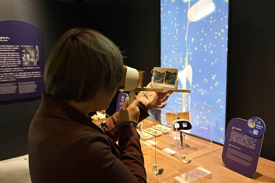 また、エリア4「発見の工房」ではガウディのアトリエを再現。ガウディが着目していた重力やバランスといった「自然の力」を体験できるブースに加え、来場者がデジタル上の「フニクラ模型」を動かし、ガウディのデザインを想起させるような建築物をスクリーンに映し出せる体験ブースも。こちらはQRコードを読み込めば画像を保存できるので、展覧会に参加した思い出としても嬉しい。