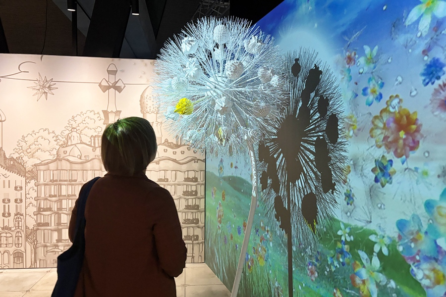 会場は7エリアに分かれており、エリア2「記憶の森」では、ガウディの感性を育てた幼少期や、糸杉や蜂の巣など自然から着想を得た建築構造などを紹介。どのようにガウディが「ベリェスグアルド」や「カサカルベット」といった印象的な建築物を作り上げたかを辿ることができる。