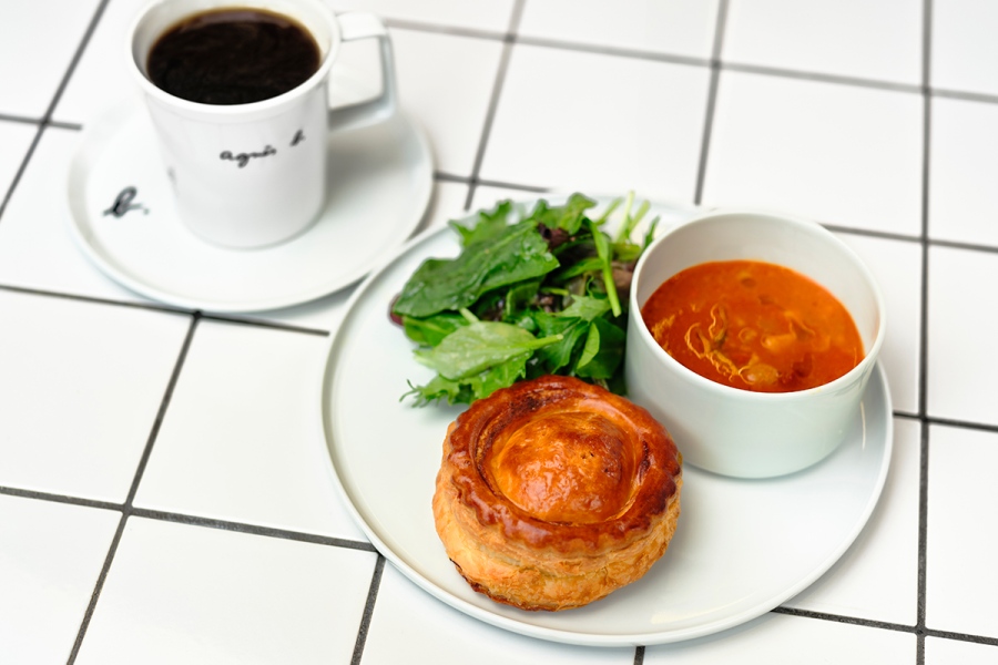 店内では、神戸・元町にある明治4年創業の老舗「大井肉店」の神戸牛を使ったミートパイセット(1980円)をはじめ、創業100年を超えるバームクーヘンの名店「ユーハイム」とのコラボメニューであるミニパフェ(1650円)など、ここでしか味わえない商品もずらり。そのほか、淡路島産のタマネギを使ったオニオンスープ(880円)や、パリ発の「リベルテ・パティスリー・ブーランジェリー」のパン&フランス発祥の「ボンヌママン」のジャムを使用したクロワッサンセット(1650円)なども多彩に。