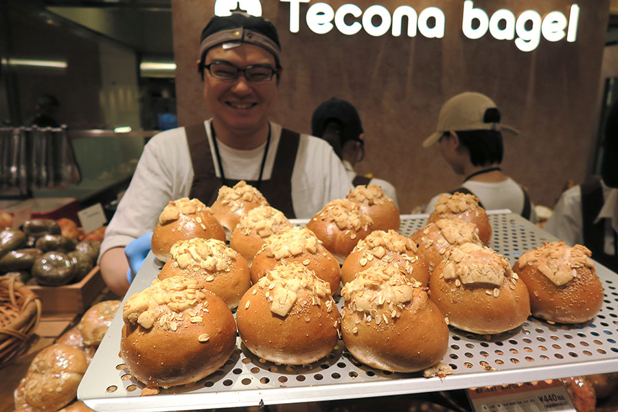 東京のベーグル専門店「tecona bagel(テコナベーグル)」が4月20日、JR大阪駅直結の百貨店「大丸梅田店」(大阪市北区)にオープン。関西では初の常設店となり、初日はオープン直後からにぎわいをみせた。