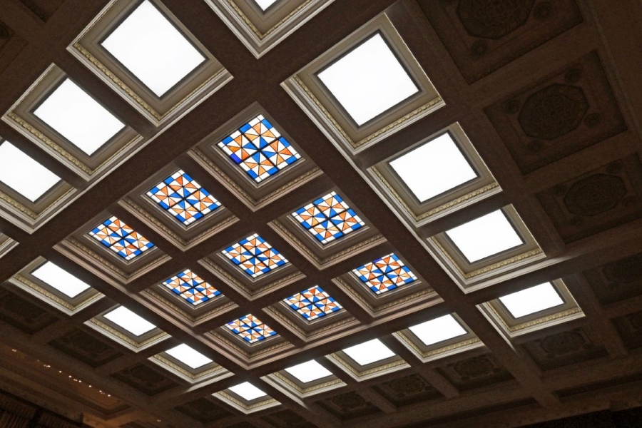 • 「市会議場」幾何学模様のステンドグラス「京都市庁舎」