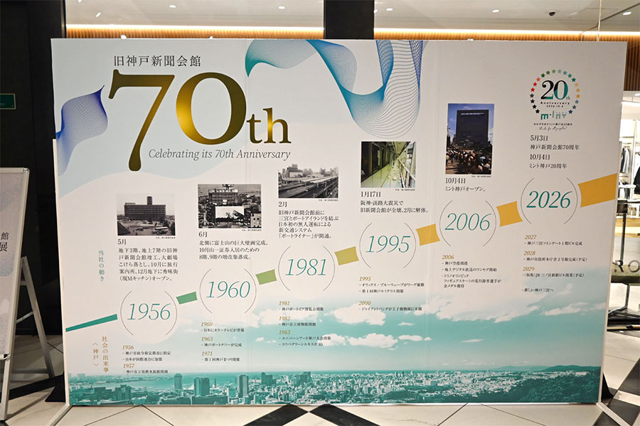 『旧神戸新聞会館70周年記念パネル展』は、4月24日から5月10日まで開催。会場は、ミント神戸2階特設会場・南側出入り口壁面。時間は11時から20時まで。入場無料。これからさらに大きく変貌する、三宮駅周辺のひとつの歴史をのぞいてみては。