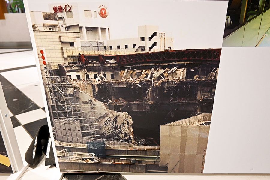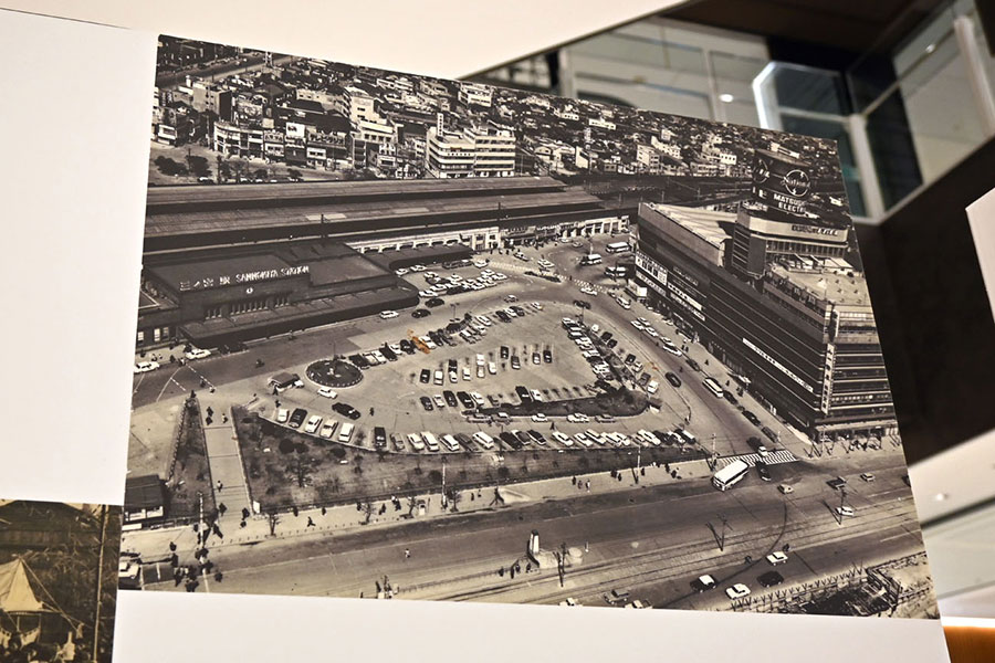 一方、パネル展示では、「旧神戸新聞会館」や昔の三宮駅周辺を思い出す写真を多数展示。震災で倒壊の危険があるなか、神戸新聞社・写真部が建物に入り持ち出した段ボール300箱の中にあった貴重な写真も展示されている。