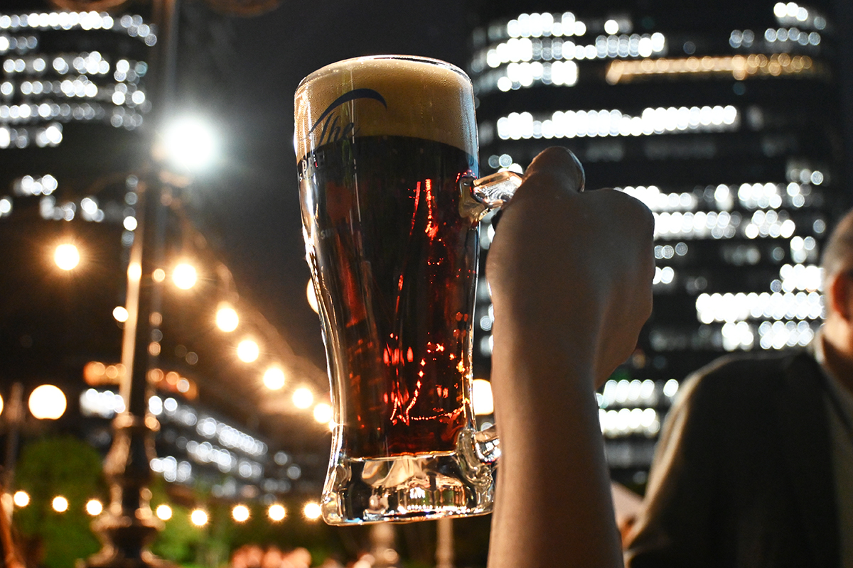 「サントリー」本社ビルが完成した1971年に営業を開始し、約55年もの歴史を持つ同ビアガーデン。大阪・堂島というビジネス街の中心地にあり、高層ビルに囲まれた都会的なロケーションでお酒や料理を楽しめる。