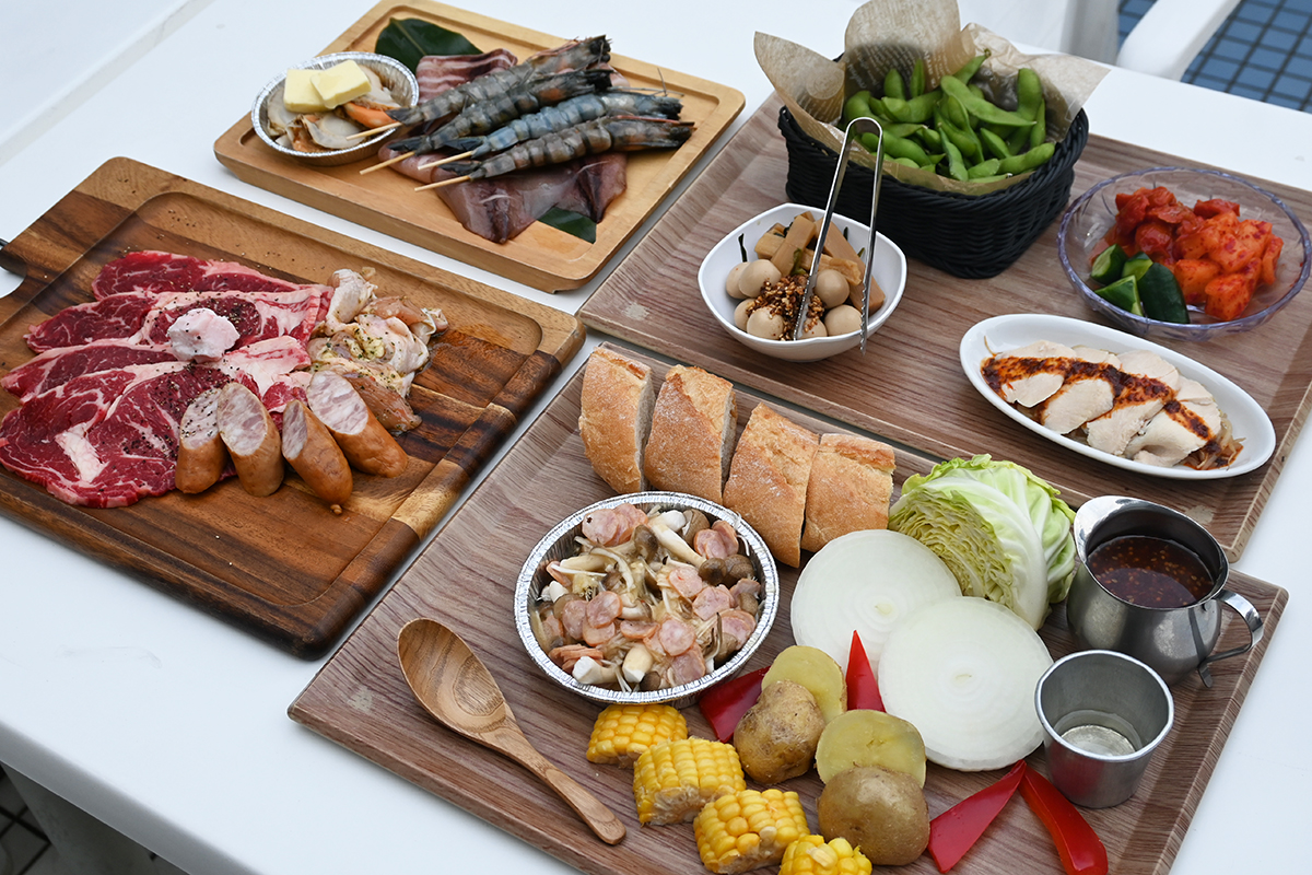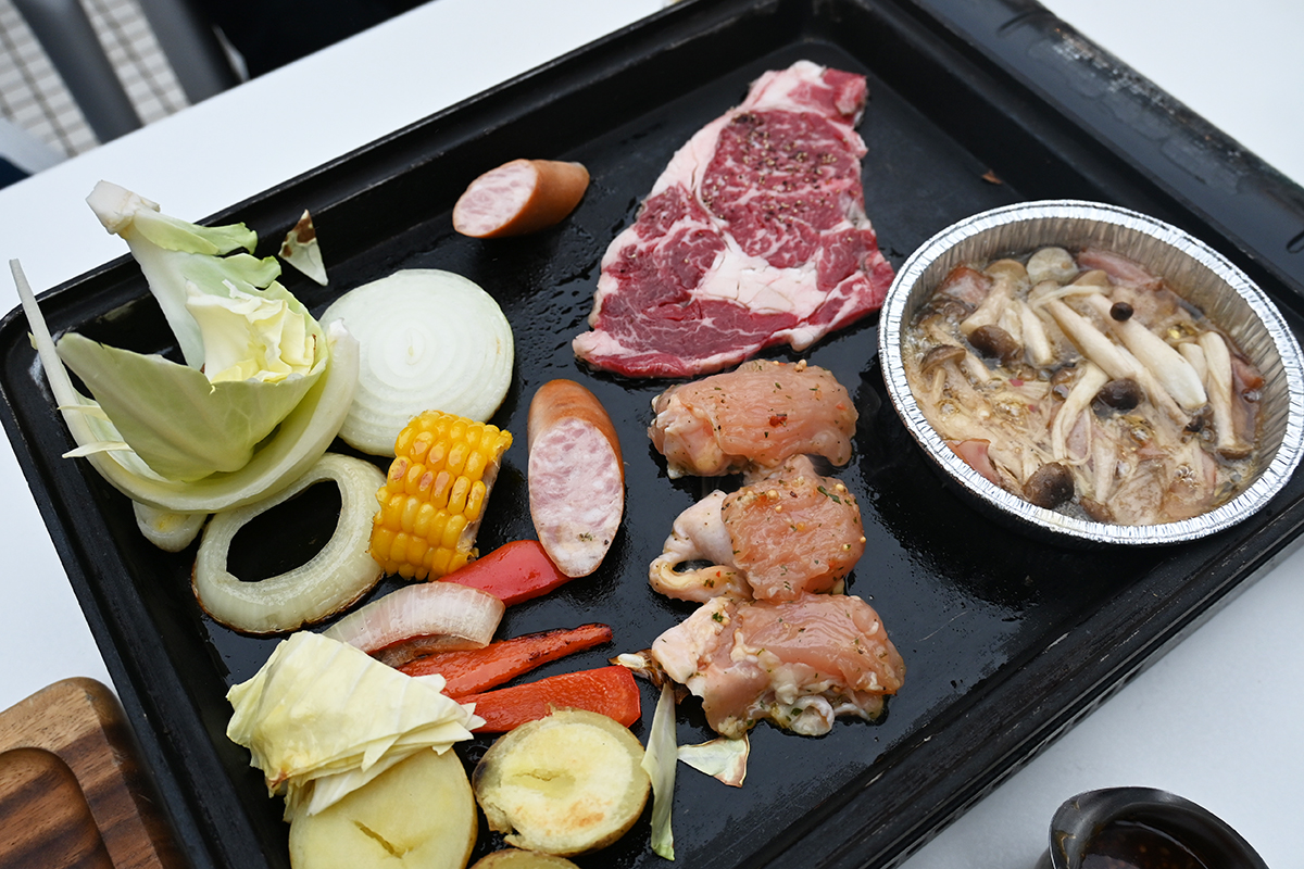 料理はコース制となっており、期間中いつでも注文できる「国産牛ロースのBBQコース」(6000円)と「国産牛ロースとシーフードのBBQコース」(7000円)の2コースがスタンバイ。