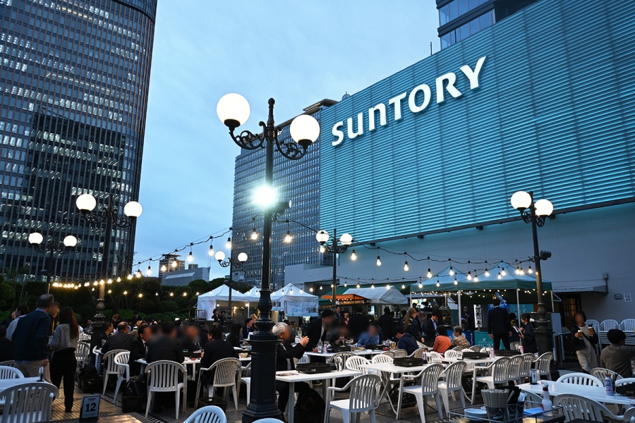 飲料メーカー「サントリー」の本社ビル(大阪市北区)にておこなわれる「サントリービル屋上ビアガーデン」が今年も開催。4月24日の開幕日、ビアガーデンの季節からはひと足早い時期でありながら、会場には多くの人々が集っていた。