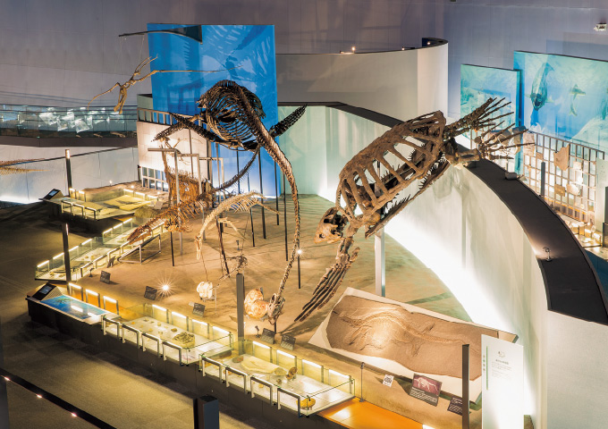 「恐竜」を中心とした国内最大級の地質・古生物学博物館。44体の恐竜全身骨格をはじめ、千数百点もの標本の展示はどれも見応えあり。失われた恐竜時代がよみがえったかのような巨大復元ジオラマは圧巻だ。